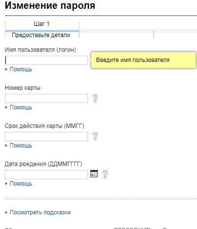 В диалоговом окне, которые высветится после нажатия клавиши, нужно ввести логин (имя пользования системой), номер банковской карты, срок ее действия, дату рождения.