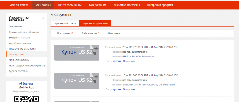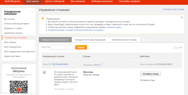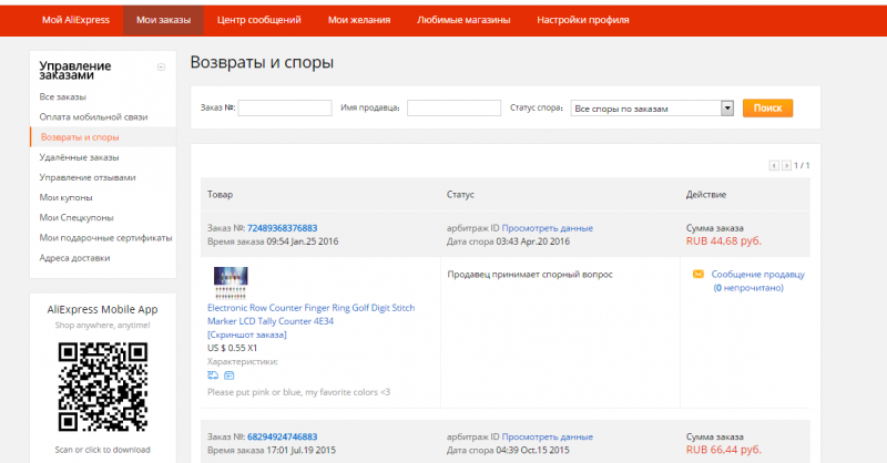 Теперь поговорим о каждом разделе более подробно и начнем с Мой AliExpress.