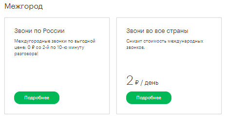 Межгород. Эта категория позволяет настроить тариф для звонков внутри России и за её пределы.
